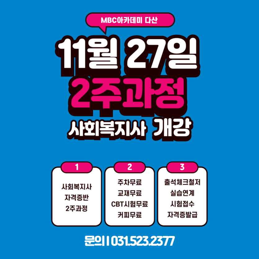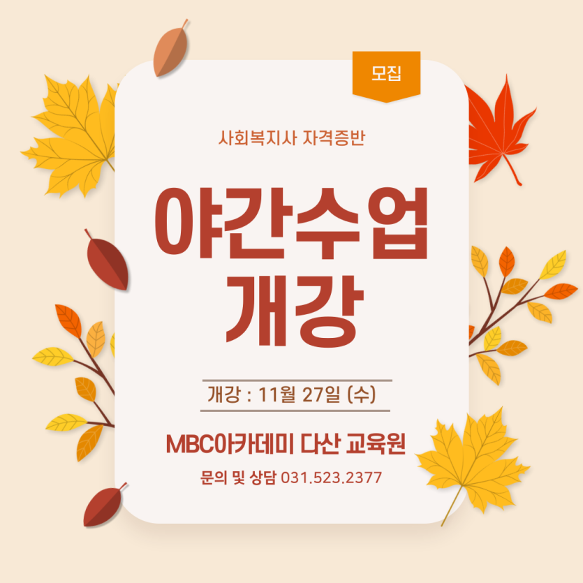 11월 27일 야간반 사회복지사반 2주과정 개강합니다