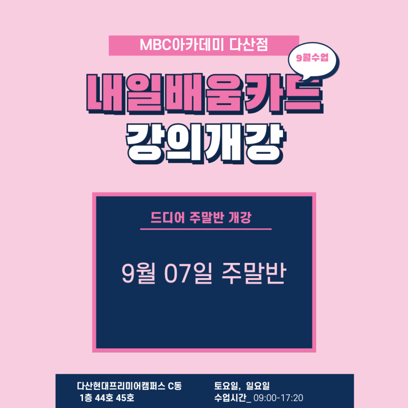 9월 7일 토요일은 2024년 다산동 최초로 주말 일반반 / 내일배움카드 / 자격증반 수업을 개강합니다