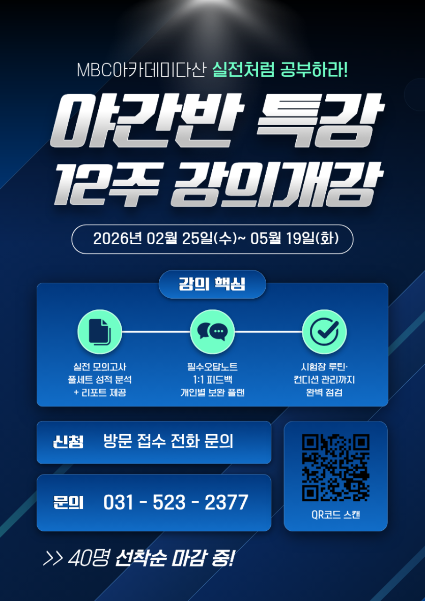 미리미리 문의 수강신청 해주세요 야간반 수업은 많이 없습니다 조기에 마감 될 수 있습니다