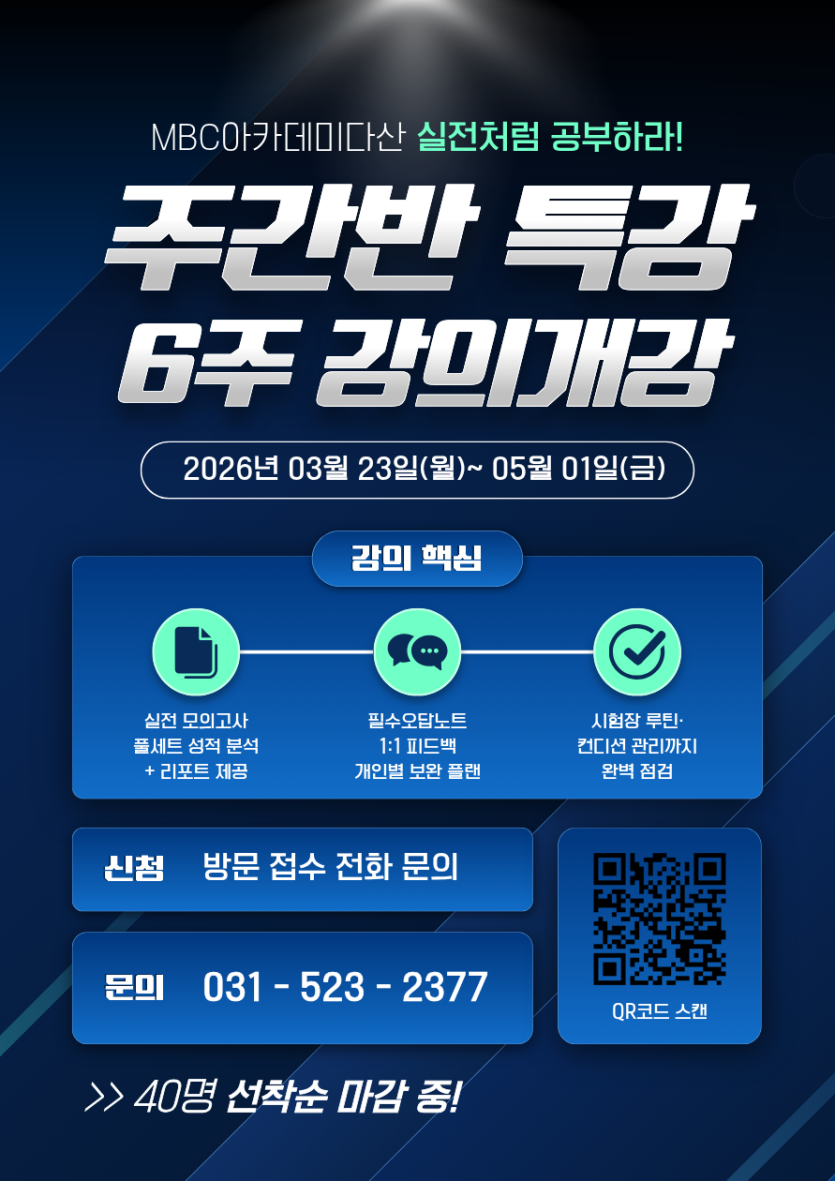 - 다음글3월 28일 토요일 주말반 개강 26.02.04