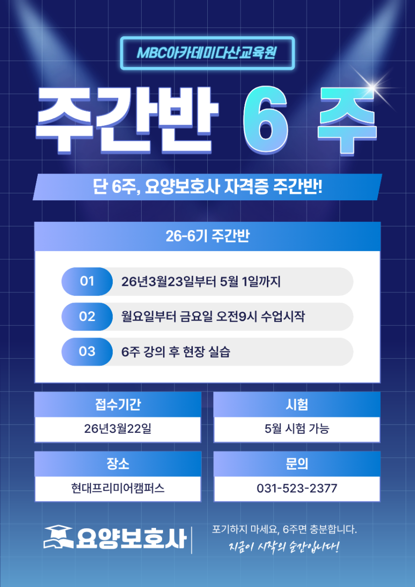 6주과정 요양보호사 자격증 취득 주간반 개강합니다