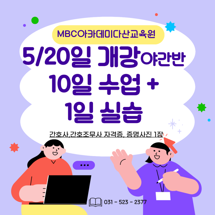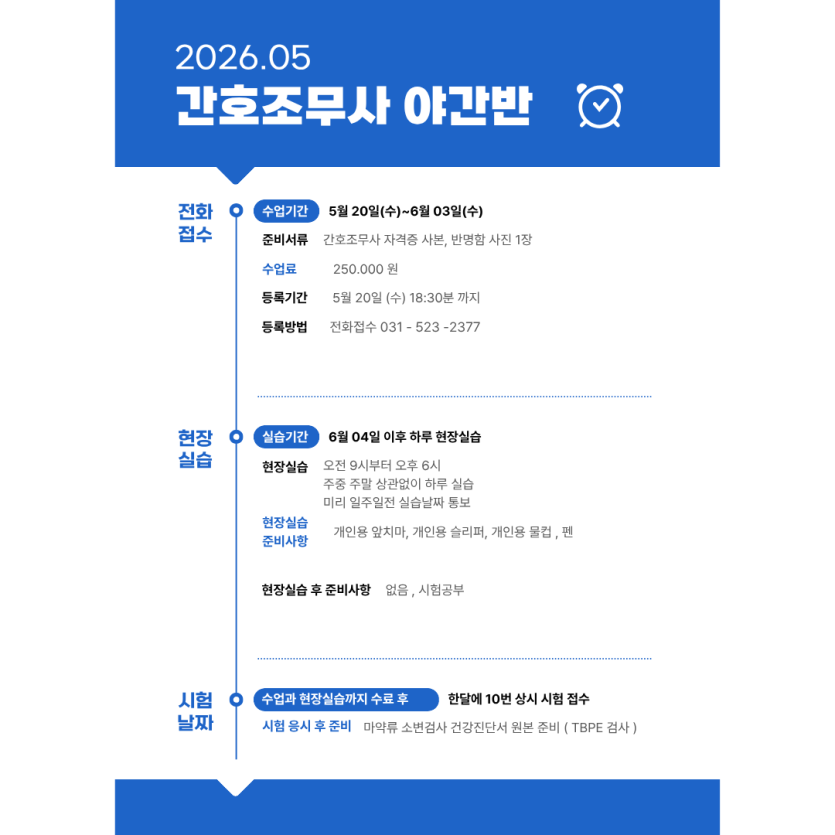 5월 20일 수요일 야간반 간호조무사 간호사 수업 개강