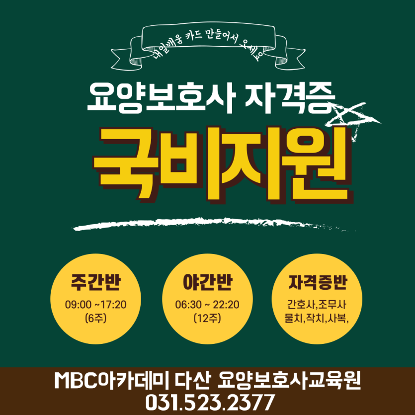 6/26(수) 주간반부터 내일배움카드로 등록이 가능하십니다~